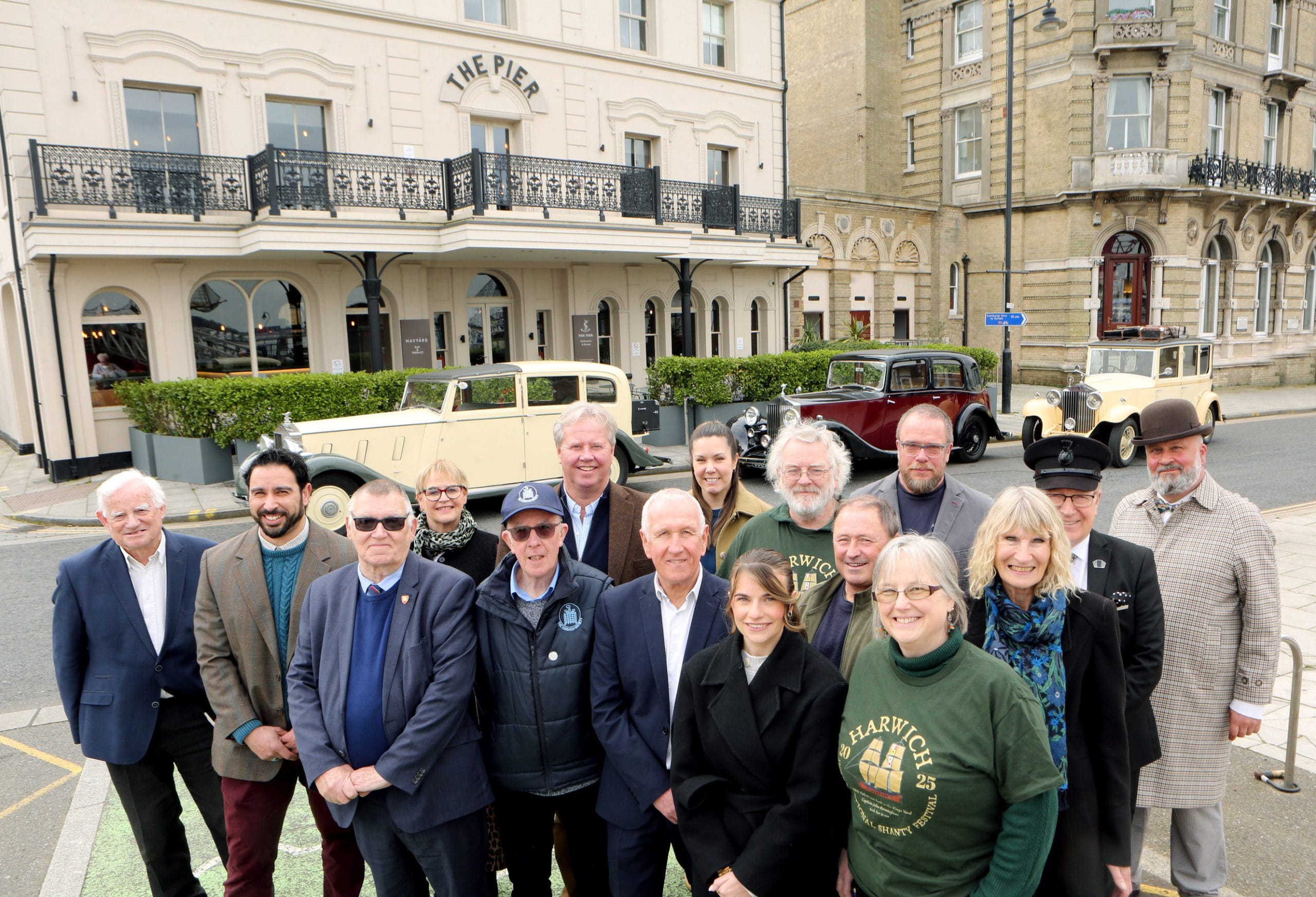The vehicles were welcomed by members of the Harwich Tourism Group outside The Pier hotel, keen to highlight how, even 100 years later, the opportunity of connecting Harwich and Felixstowe with a daily car or foot ferry remains as beneficial as ever.